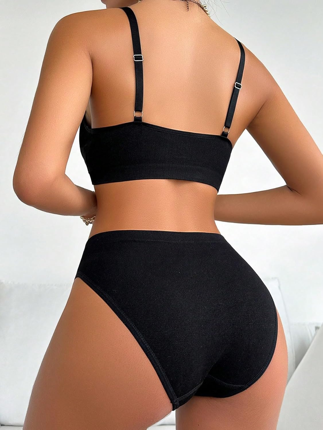 - Feature: 2 piece set, spaghetti strap, v neck, wireless bra, briefs, womens lingerie, fashionable